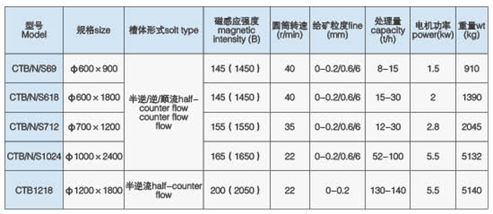 此系列产品主要用于铁选厂,其选矿的比磁系数不小于3000×10-6cm²/g,.设备分为混式永磁筒式和干式永磁磁立滚筒磁选机。主要磨矿细度0.5-6cm,湿式分为S型-顺流、N型-逆流、B型-半逆流。